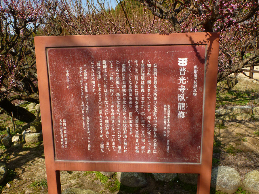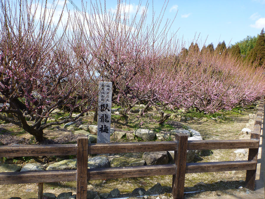 しかし、ここに来てやっと復活宣言できるかな? 6日の阿蘇大観峰ツアーの報告は既にしましたが、3日には、我が最重量マシンによる全メニュー制覇の一環で、三瀬峠制覇。タイムは27分02秒ですが、、。(-.-;)y-゜゜ 7日は、蛤岳林道〜金山林道の二林道を走り、10日には、再び最重量マシンで仮制覇の米の山完全制覇! 11日は、八女の遊の谷へ走り、地鶏焼き制覇!(^^) そして12日は大牟田普光寺の臥龍梅観賞と、まさに自転車三昧の日々です。今回は、初登場大牟田ツアーの折の写真をご紹介。 沿道のあちこちで梅や菜の花の景色を楽しみましたが、これは船小屋の矢部川の景色。菜の花の黄色が遠くに見えます。 そして瀬高で偶然見つけた東照寺。田園風景の中に忽然と威容を現しました。何となく周囲に溶け込まない感じもしましたが、、。 二体の像も見事でした。 そしてお目当ての臥龍梅。 例年より開花が遅れ3〜4分咲きでしたが、満開時の美事さは想像に難くありません。今度の日曜にでも如何ですか? 普光寺境内には臥龍梅の他にもたくさんの梅があります。小高い場所を占め大牟田市街はもちろん、遠く有明海・島原方面が見えます。梅越しに望むその景色はまさに眼福を得ると言うに値します。 楽しみながら自転車を走らせ、12日迄に自転車558㎞、ラン43㎞を走破しました!何としても今年初の自転車月1000㎞を達成するぞ、、、ドモ\(^_^ 因みに、今日15日最重量マシンでアウター・ノンストップ板屋峠制覇。大門〜板屋峠10.2㎞、所要時間1時間38秒!…>_<… 峠は厳しかったけど、夕暮れ前の景色は優しかった〜〜!!!
