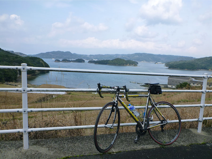 更に、用水路に落ちて途方に暮れる女性に出くわし救助、とハプニングの多い旅でした。 しかし、このツアーの一番の魅力は、鷹島大橋周辺の素晴らしい景色です。 今回3度目の訪問、依然晴天には恵まれませんが、なだらかに続く丘陵地、澄みきって深い色合いの海、そこに散らばる島嶼、、、本当に心癒される風景です。次回こそは青空の下に光り輝く夢の景色を見たいものです。