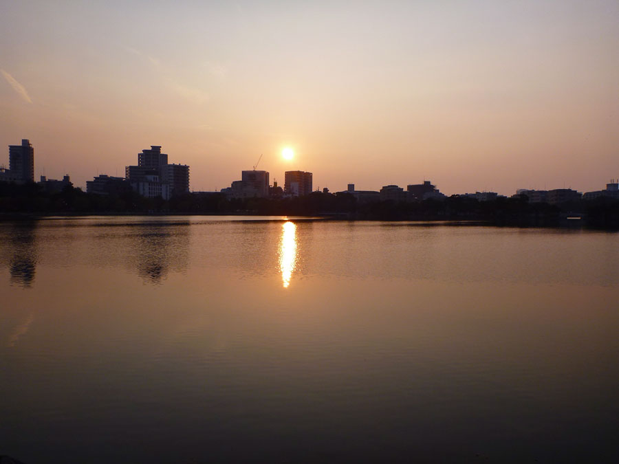そして9日(日)。目覚まし2つセットするも目が覚めない!熟睡・爆睡・浸水沈没。6時前になってやっと床を出ます。何とか集合時間にメンバーと合流。ところが身体も気持ちも重い。ただ、宗像さつき松原沿いの海の眺めに癒されます。 海の水の透明度が分かるでしょうか? 次の左端の写真だけでも拡大して下さい。空がやや霞んでいますが、中央部水平線上に大島の島影がかすかに見えるはずです。 しか〜〜し、その眺めの癒しの力も及ばず、遂に美味しい昼食を取ったところで途中離脱を決断します。 翌10日、やはり熟睡、爆睡!!やや足に張りを覚えます。しかし、ここで休んでなるものか σ(^^) 大濠公園15周以上と決意して出撃です。ジョギングですが、、。素晴らしい青空の下、気温も上昇、やる気も上昇! しかし、夕方涼しい風を受けながら走る方がいいですね。空の色の変化が楽しめるのもいい。西の空に揺らめくが如くオレンジ色の太陽が沈む頃が最高!夕刻の大濠の景色をお裾分けします。 ところが、秋といえども晴天はジョギングに向いていません。爽やかな景色とは対照的に汗が滴ります。10周目あたりから極端にペースダウン。やがて意識朦朧の手前状態、、、13周したところで戦線離脱の決断 (>_<)ゞ 汚いですが、私のウエアをご覧下さい。 両腕付け根部分と、胸部下の白い模様。塩です!自家製の塩、原材料は汗でございます。水分補給、塩分補給が問題なのでしょう。フルマラソン挑戦前に一度は30㎞走破、の目標は断念。またまた完走への不安が膨らみます。 その翌朝、偶然見たのが米寿にして短距離走の世界記録保持者である守田満さんを紹介する番組。何と70歳から短距離走を始めたと〜〜っ!! 歳を言い訳にすることの多い中、その走る姿は光り輝いていました。ヾ(℃゜)々 まだまだ気合いの入れ方がなっとらん!『喝』活を入れていただきました。ついでに、以前紹介した本、神渡良平著「佐藤一斎「言志四録」を読む」改めて一読をお薦めします。人生を見つめるために、人生に活を入れるために。読書の秋、そして運動の秋、しっかり楽しみましょう。 |