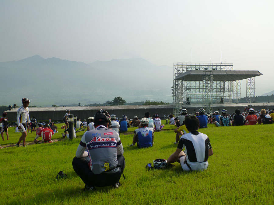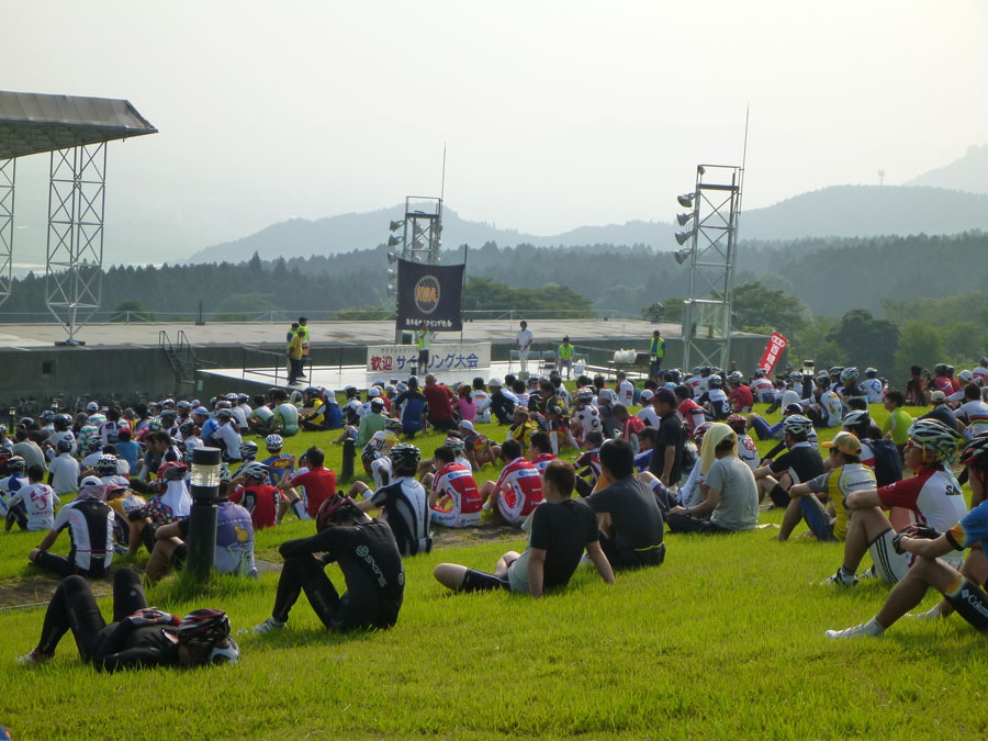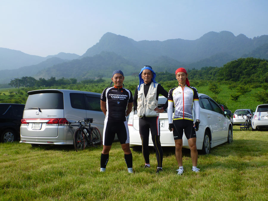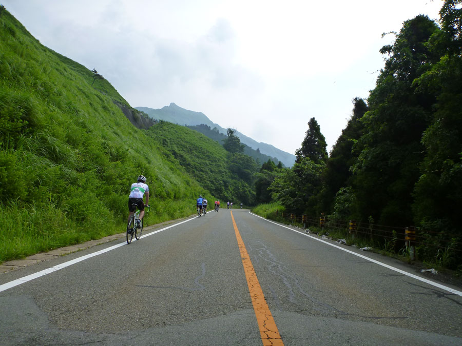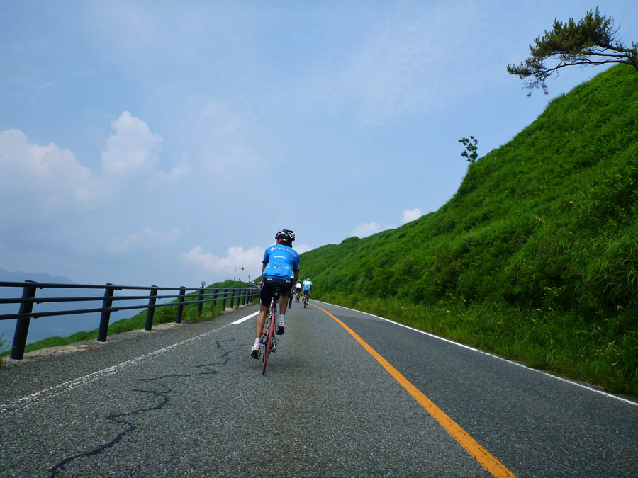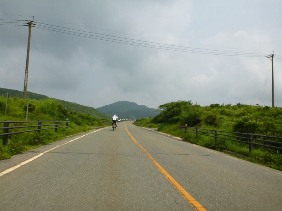 私が自転車を通して、人生を楽しむことに目覚めたように、多くの人に自転車を楽しんで欲しいという思いから書きました。また、同じように自転車好きの仲間でチームを結成しています。気軽にご参加下さい! 24日、阿蘇望完走の余韻に浸りビールに酔うも、何となく肌寒い。汗で濡れたウエア を着たままでは仕方ないか、、。 26日、昨日の大濠ランのせいか、やや身体が重い。時間だけが過ぎ早夕刻。そんな時の強い味方が即行バイクコース。早速出発。しかし、蒸し暑さのせいか一段と身体が重い。オマケに頭痛も、、。時折腰砕けになりそうなほど力が抜ける。違和感を覚えつつも、急ぎの町内会の用を済ます。汗がボタボタ流れる。なのに寒気が、、、。おかしいぞ〜〜っ! そして27日、朝から37度超!ピ〜ンチ。 朝ご飯を掻き込むや、風邪薬を飲んで二度寝。夕方5時起床!熱は平熱。早速身支度、即行バイクコースへ!はい、なんとか寒気もなく走れました〜。 暑さの本番はまだこれから、皆さんも体調 管理には万全をm(__)m えっ、タイトル?若い方には分かりませんかね?連続運動記録が途絶えるところだったのです。『ロシアより愛を込めて』つまり、『007 危機一発』窮地を間一髪の差で逃れたという訳です。 危機一髪としなかったのは、意図的だったのか?しか〜し、菅一発はだめです!日本が滅びます、、、。(-.-;)y-゜゜ 今回の写真は、即行バイクコース中の最も苦っ楽しい部分、萩ノ原峠(最初3枚)ともーもーランド(残り4枚)の紹介です。 今日は、阿蘇望の日。自転車仲間のスマイリーさん、グレッグおかさんと3人で参加します。 7時過ぎ会場着。辺りの景色はあくまでも穏やかな表情。やがて上る阿蘇中岳は霞んでいます。 スタート時間も迫って、開会式は上の空。徐々に気持ちが高まります。 スタートして、先ずは中岳をめざします。それなりの勾配がありますが、まだまだハンドルに取り付けたデジカメに気を配る余裕もあります。 やがて、中岳山頂付近を通り、草千里を過ぎると、快適な下り坂。時には60km/hを超えていたようです。