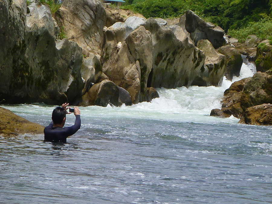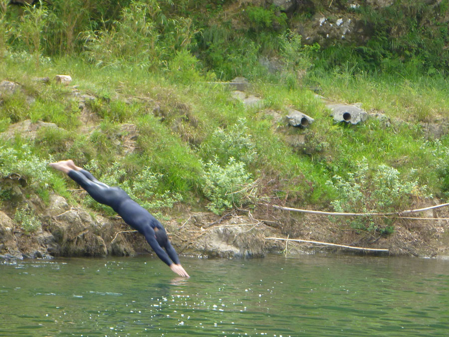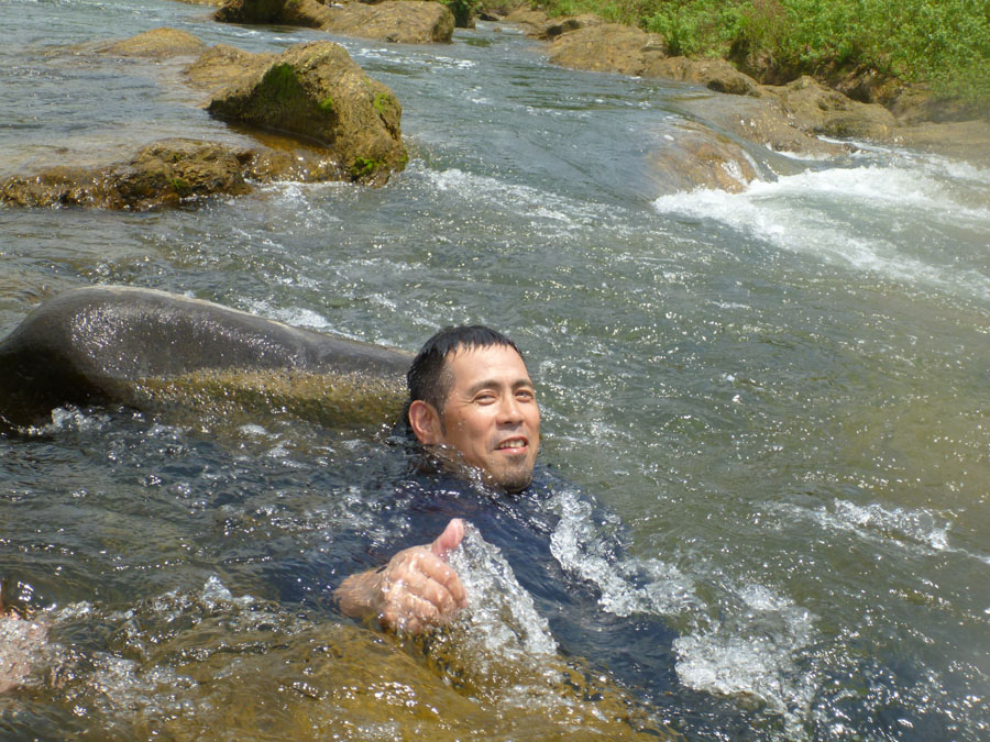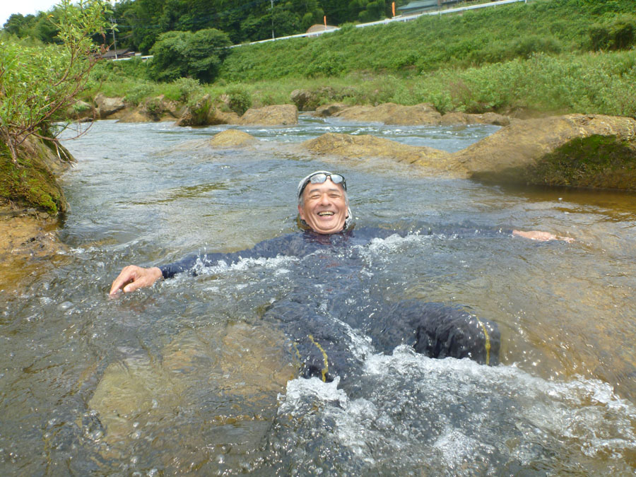 しか〜し、今回はそうはならないのです。な〜ぜだ〜? その味を凌ぐ素晴らしさを味わったからです。この日の最高気温は多分35℃前後だったのでは?そんな暑さの中訪ねたのがここです。 もうおわかりでしょう。到着した1〜2分後にはご覧の通りです。夏雲が浮かび太陽が照りつける中での至福の時!冷たい水の中にいつまでも浸っていたいと思わされました。参加者の平均年齢ウン十歳代。しかしてその平均精神年齢は『美しい十代』でした (^○^) アップ宣言はまだしません。本日のルート。 そんな気持ちから、特に自転車愛好家の皆さん向けに、今回の取り組みの成果を反映した『新・標準タイム』を掲載します。 今回『A標準タイム』と、『B標準タイム』を掲載します。 『A標準タイム』は従来の『標準タイム』と同じです。 A標準で狙える記録の目安: ・ツール・ド・国東: Aコース(160㎞) 6時間30〜50分 ・阿蘇望: Aコース(120㎞) 制限時間内完走 B標準で狙える記録の目安: ・ツール・ド・国東: Aコース(160㎞) 5時間30〜6時間 ・阿蘇望: Aコース(120㎞) ゆとりのある完走 練習場所と標準タイム (計時地点は写真を、ルートは緑色のルート名をクリック拡大して確認下さい) 1)油山 観光道路〜片江展望台 距離 2.25㎞