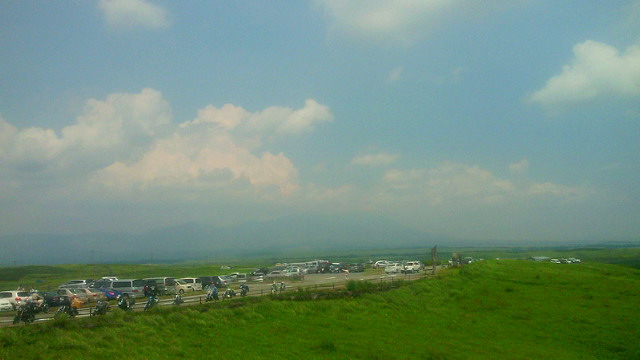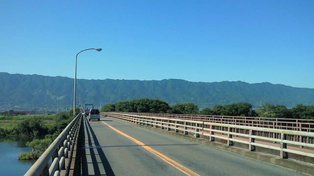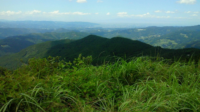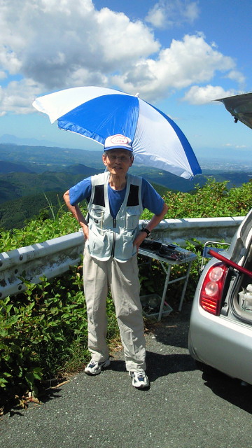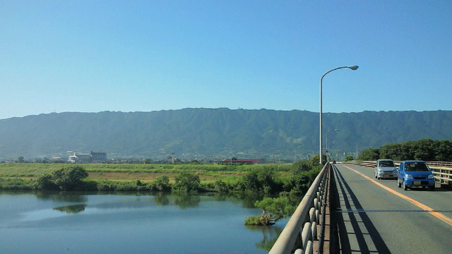 「温暖化」の根拠なしとする説も有力とか、この「熱さ」を前にして「温暖化」を否定することこそ根拠がないと思われます。 「文明の 行き着く先か 燃える夏」 1日の釈迦岳後の暑さは異常。ジョギングで吸い込む空気が喉に熱い。先月7kmになった距離も4kmに逆戻り。疲労感から7日土曜はジョギング、自転車ともに中止。『歳が歳だけに、日曜の疲れが遅れて出ただけ』とは外野の声、、? 夜、武蔵台高校同窓会出席。懐かしい教え子たちとの再開、思い出話に疲れも吹き飛ぶ。 8日、前夜の勢いに乗って久留米の鷹取山へ自転車を駆る。 筑後川から撮った写真。2枚目左端辺りが鷹取山802m。そこから尾根伝いに約20km、3枚目右端先の高良山を目指す。 そこで会ったのがアマチュア無線家荒木さん。パラソルの陰で休ませて頂き、冷たい水とドリンク剤までも頂いた。聞けば住まいは武蔵台と同じ天拝坂!! 何かのご縁があったとしか思えない。いつ迄も元気にご活躍下さい。お蔭様で約130kmの旅、無事終えました! 1日の釈迦岳ツアーが貢献して、今月の走行距離は10日を前に早くも400km超。しかし、この暑さ。何が起こるかわかりません。健康第一、安全第一をモットーに乗り切りたいと思います。 皆さんも、くれぐれもご自愛の上、ご活躍下さい。 (ブログ本文中の写真は全てクリックで拡大できます)