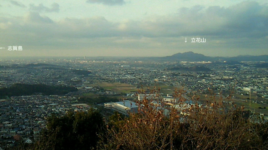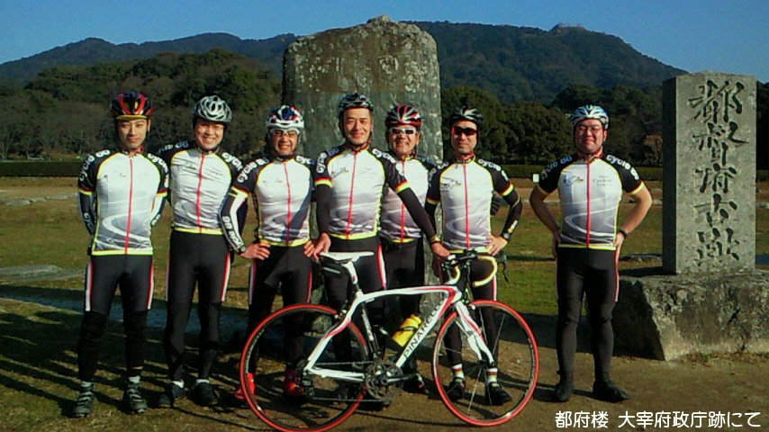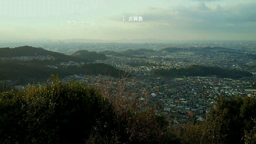 さて、サイクリング。17日 Team Cycle 86 新年第1回は参加10名。 揃いのチームウエアで都府楼跡を訪ねました。集合写真すぐ左手に柿の木2本。一本はほとんど実は残ってませんが、もう一本にはピンポン球より大きめの実が鈴なり!渋柿で鳥が食べないのでしょうか?それにしても好天下、冬の青空と柿の実の色の対比が印象的です。 22日、ヒマジンの特権。360度見晴らす絶景地ありの情報に、曇天の肌寒い中、宇美町井野山を目指します。ご紹介するのは玄界灘方向の眺めですが、反対山側の眺望もなかなかです。余裕なく井野山直行・直帰のツーリングでしたが、付近には樟の緑豊かな宇美八幡宮。次回探訪してご紹介します。
