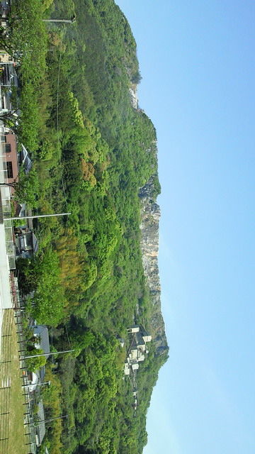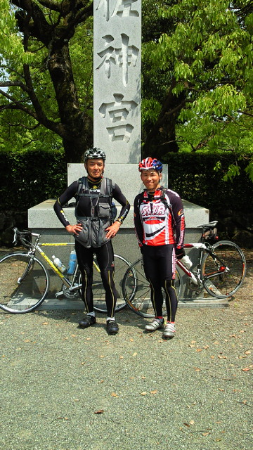 八木山峠を経由してひたすら国東を目指しました。意外に平坦で脚の不安も忘れるほど。途中、田川の香春岳の無残な姿に唖然としました(写真)。セメント製造のためか、山は削り取られ台形に。自然をも征服するつもりなのか? 行橋から中津への道沿いは、レンゲのピンクの絨毯が広がり、疲れを癒してくれました。 宇佐神宮(写真)に着いたのが1時半。昼食をとりリフレッシュ。 後はひたすら国東へ。杵築駅で妻と合流。堤くんとはお別れ。ありがとう! ツール・ド・国東の舞台、住吉浜へは、5時半に到着。ホテルからの景色(写真)に明日のレースに思いを馳せました。本日の走行距離155キロ。