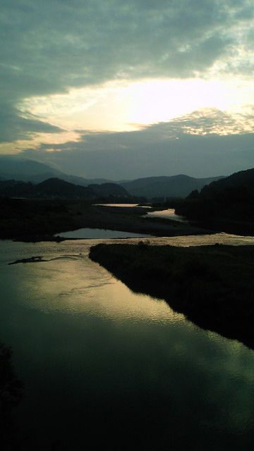 起床5時半。宿の窓から眺めると、雲間の朝日の輝きが川面に映って(写真)、楽しい1日を約束するかのよう。 しかし、足は不調、疲労感もピーク。8時になって意を決して出発。 走り始めたら、意外に快調。延岡、日南を一気に通り抜けた。日豊海岸の、夏のような青さの空と海を背にして(写真)。 アップ・ダウンはあるものの、平野部も高台部も田畑が広がり、遠くには、山並みが連なり、気持ち良く走る。調子よく宮崎に1時頃に到着。ところが、連休効果か、どこもかしこも満室・満室。 ろくすっぽ探しもせず、都城を目指したのが裏目。延々と続く坂道と苦闘の最中に、突然の雷と雨(涙)。やむなくUターン、やっと上った坂を下ること約4キロ。泊まったのは、宿と言うに値しない代物(怒り)。 まっ、屋根の下。文句も言えないか?(笑) 本日、129キロ。