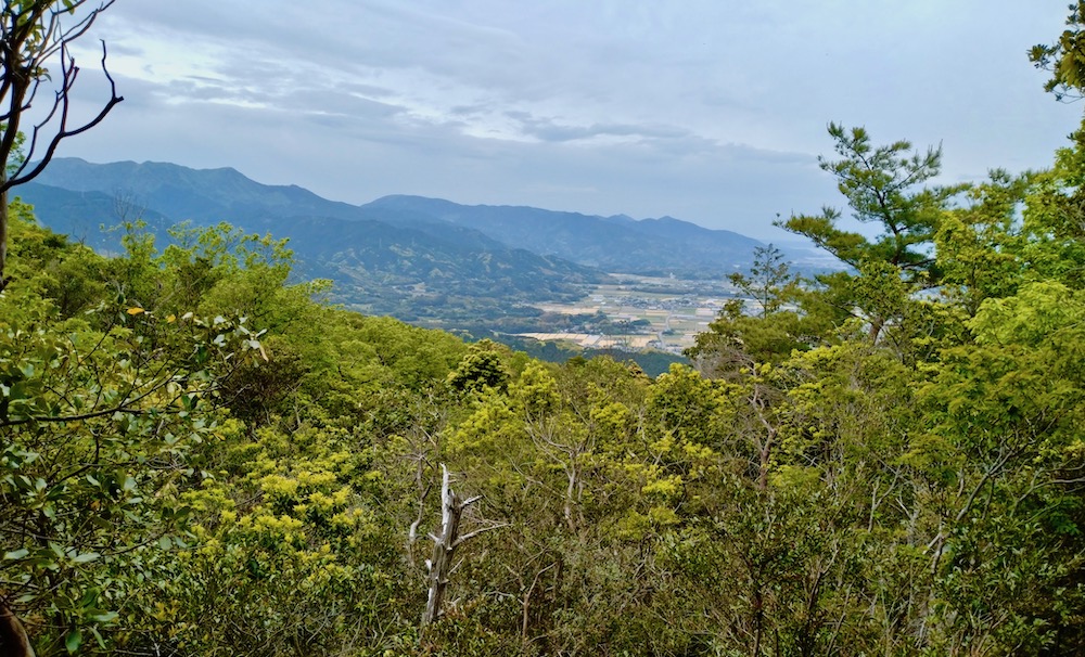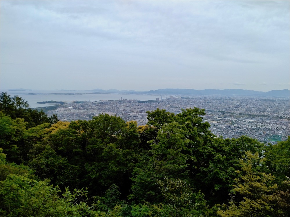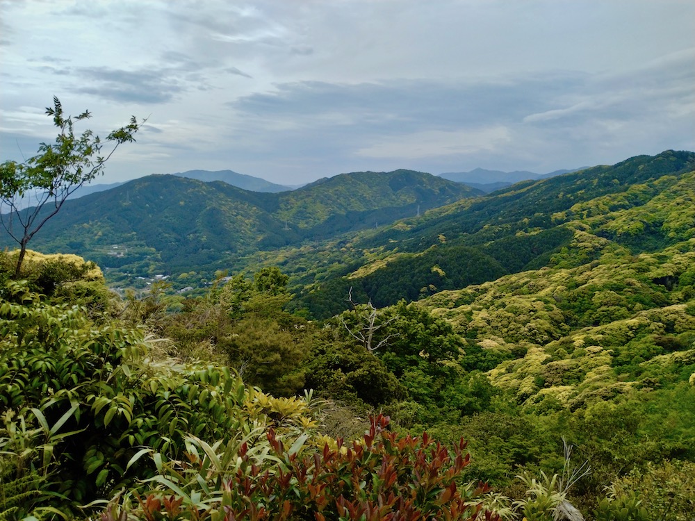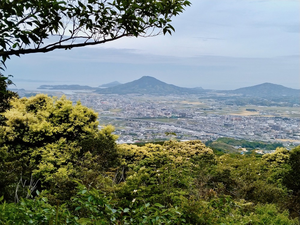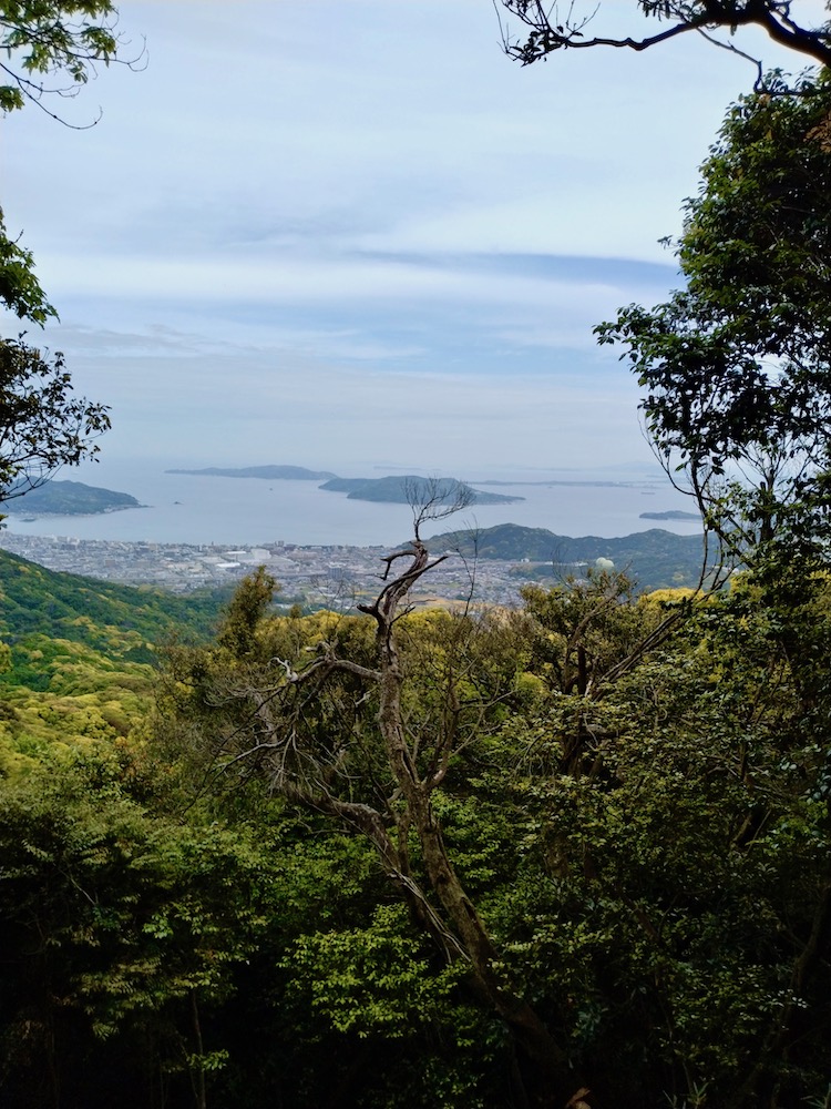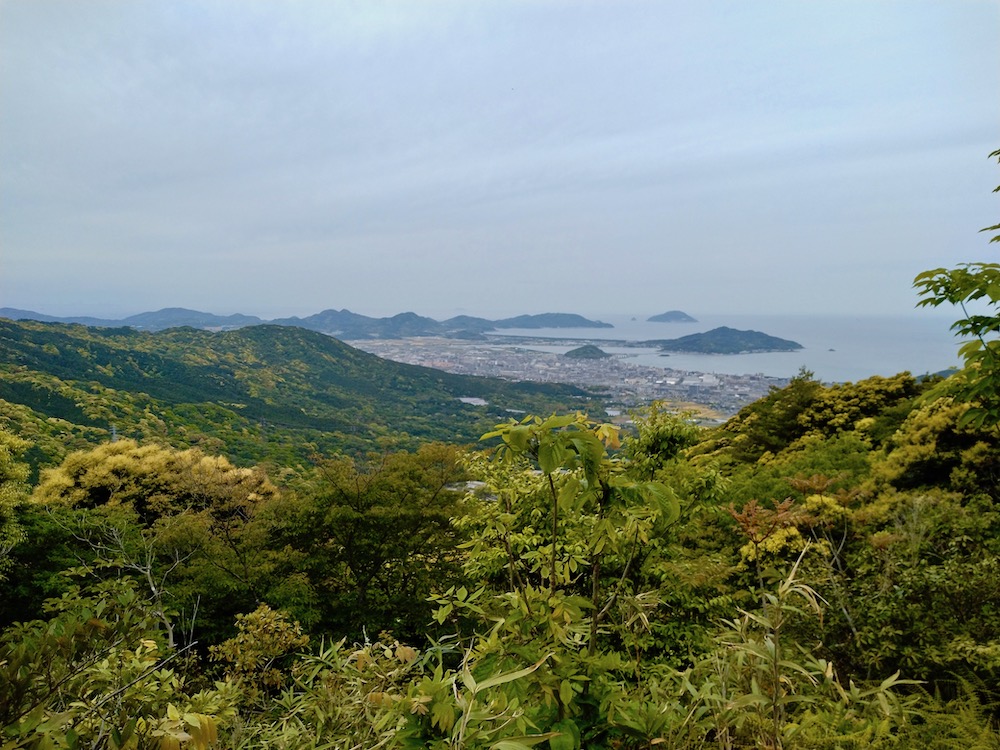 鐘撞山から登り始め、高祖山、高地山、そして叶岳を廻る周回登山だ。最初の鐘撞山かねつきやま(314m)からの眺め 左がゴール叶岳、それに連なる小高い部分が高地山 反対の西側には糸島富士。 小一時間進んで高祖山たかすやま(416m) 北方には能古島と志賀島 高祖山から望む糸島富士 高祖山から高地山が一番歩き応えがある。高地山手前の登りが最後の?関門だ。 次は高地山こうちやま(419m)からの眺望。向かいに見えるのは高祖山。明るい緑は、登山道沿いに続いてる気がするが、単なる気のせい? 左高祖山、右に離れて小高い鐘撞山 高地山のこの眺めを楽しみながらの昼飯最高! 高地山から叶岳かのうだけ(341m)はほぼ下り。そして、叶岳からは完全に下りのみ。疲れは吹っ飛び、ゆとりの表情の記念写真。 福岡市街の景色を心に刻んで、いざ下山! 叶山系周回登山:9km