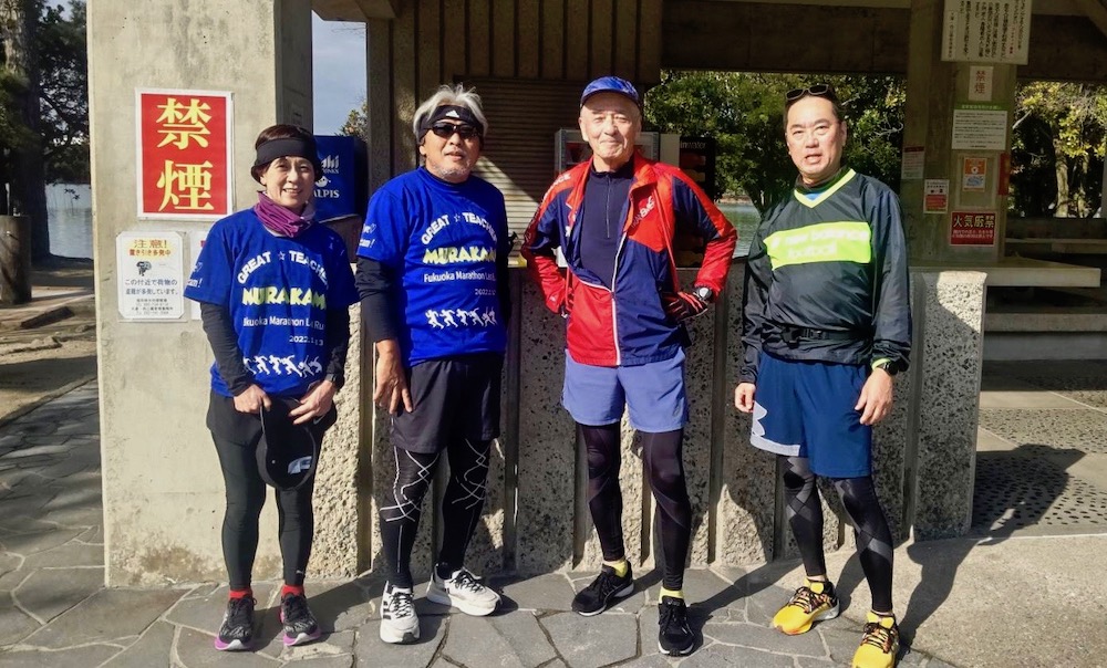 先週 2月 年間累計 ラ ン 50㎞ 221㎞ 473㎞ 自転車 10㎞ 10㎞ 25㎞ 先週は上智コース回避、平坦路の走りのチェックとスピードアップを目指して、大濠公園での10km走にかけた。5回走って50km、2月も200km超えを果たした。 フォームはゴム紐で若干補正できそうだし、体力・スピードも幾らか改善できた手応えがある。 今週は疲労抜きを意識し調整。そして5日、東京マラソン! [600(ペース)、535(ペース)等の表記は、 それぞれ1㎞6分00秒、5分35秒で走ること] 今週のムッサン 4日(土) 午前中、宿からスタート地点へ向かい入場ゲートの確認をした。しか〜し、入場ゲートが分からず彷徨うこと1時間。昨日に続いて疲れ果てた・・。こんな有様で果たしてレース大丈夫?? 3日(金) 朝7時福岡完走発の便で東京へ。 到着後は即受付を済ませ宿へ向かった。しか〜し、たったこれだけで疲労困憊・・。 2日(木) 明日・明後日は完全休足、で不安はあるがJOG実施した。脚と相談しながらビクビクだったが5km走り切った。 上智5kmJOG:807 明日の脚の状態は、天のみぞ知る・・。 1日(水) 脚・膝の痛み治らず、完全休足にした。東京マラソン黃信号。 28日(火) ちょっとやばい・・。大濠でインターバル走をしたが、右膝が強張り固まった感じ。痛みで思い切って走れない。 予定通り100mを7本走ったが、後のジョギングは中止・・。果たして明日は? 大濠100m×7int. 3km:best 24.4 av. 25.4 27日(月) 昨日は少々頑張りすぎたようで、脚に張りと痛み・・。ランは中止、歩くことにした。区役所で雑用を片付け、ついでに、マラソン用の帽子購入。応援してくれる友人たちが見つけやすいよう選んだつもりだが、効果やいかに? 26日(日) いよいよ来週日曜、東京マラソン。昨年の福岡マラソンの我が走りに不安を覚えて、壮行練習会を計画してくれた。冒頭今週の写真はその一コマ。 この練習会、本当にありがたかった。先週大濠まずまずのペースだったが、今日は一気にそれを更新。いや〜 仲間の威力ちゃぁ偉大だ、ありがとう! 大濠10kmJOG:647 これで東京マラソン、完走の望みを持って臨める! 盡人事待天命の心境? 少なくとも福岡2023完走は大きく手繰り寄せた! 壮行練習会企画ありがとう。東京マラソン・佐賀マラソン、お互い顔晴ろう!