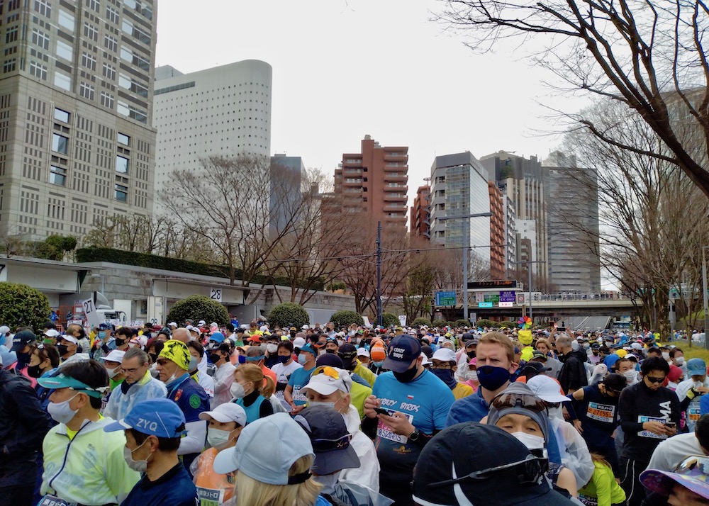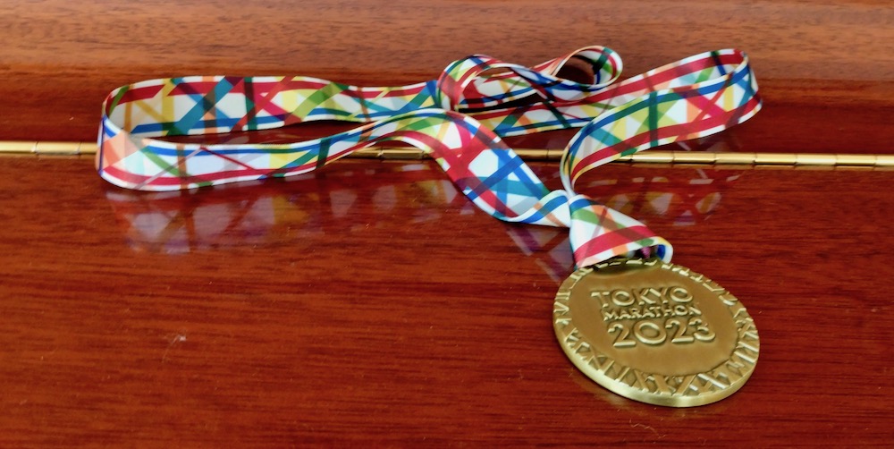 先週 2月 年間累計 ラ ン 13㎞ 234㎞ 486㎞ 自転車 10㎞ 20㎞ 35㎞ 先週 3月 年間累計 ラ ン 5㎞ 5㎞ 491㎞ 自転車 0㎞ 0㎞ 35㎞ 先週やや脚の状態を崩してしまった。完全休足の日を増やしてコンディション回復を図ったが、、とにかく東京マラソン突入! 崩れ切ったフォームの修復を狙って、秘密兵器『ゴム紐』を携帯してレースに臨むことにした。 フォームの崩れで、体力過剰消耗の不安はあるが、1月・2月で500km近く走って体力・脚力強化に取り組んだ。 不足分は気力で補う! [600(ペース)、535(ペース)等の表記は、 それぞれ1㎞6分00秒、5分35秒で走ること] 今週のムッサン 11日(土) 今日も自堕落生活・・。(苦笑)庭の整美作業、王将戦観戦。 10日(金) 今日こそはラン!と思ったが、とにかく眠気・疲労感が取れない。このいい加減さをブログアップしたからには、明日は絶対に運動する。ランになるか速歩になるか? 今日で自堕落生活終了!!?(笑) 9日(木) 眠気が全く取れない・・。一日中ボーッとして難民だね。ボートピープル・・。MBC対中国戦観戦。大谷の存在感の大きさ別格! 8日(水) 足の張りは随分改善したが、強い眠気が抜けない。A級順位戦プレーオフを観戦しながらアルコール。藤井竜王の名人戦進出決定! 7日(火) 今朝も筋肉の強張りが残る。楽しい東京滞在終了。帰路富士山が見えると機内アナウンス、しか〜し、見えるのは通路を挟んで反対側・・。冠雪した別の山を撮ってじっと我慢の子。 6日(月) 昨日ゴール後、大腿部の張りと痛みが酷かったが、やや改善傾向にあるものの依然階段下りはおっかなびっくり・・。 横浜で友人と昼間から慰労会、昨夜散々飲んだ筈だが別腹! 酒が進む、進む!(笑) 5日(日) 東京マラソン当日。朝7時半ホテルより、いざ、出撃! 8時過ぎスタート会場到着。曇天はありがたいが寒かった! そしてランナーの多いこと。 参加者実に38,000人!! 前方はご覧のとおり。 号砲が鳴りスタートラインを跨ぐ迄に15分以上経過。走れる状態になるまで更に数分・・。 スタート前の寒さで体調を崩し苦しい走りになった。レースの詳細は後日報告するが、ぎりぎり滑り込みで完走は果たした。 東京マラソン2023:44.43km 最悪の状況下、完走できたのは、沿道から応援してくれた友人たち、そして、メールやネットで我が走りを見守り応援してくれた仲間たちの存在あればこそ。心から感謝・お礼申し上げます。 慰労会のビールの味は格別だった。