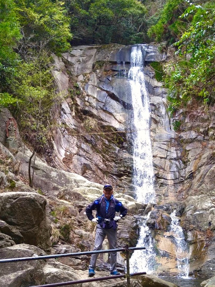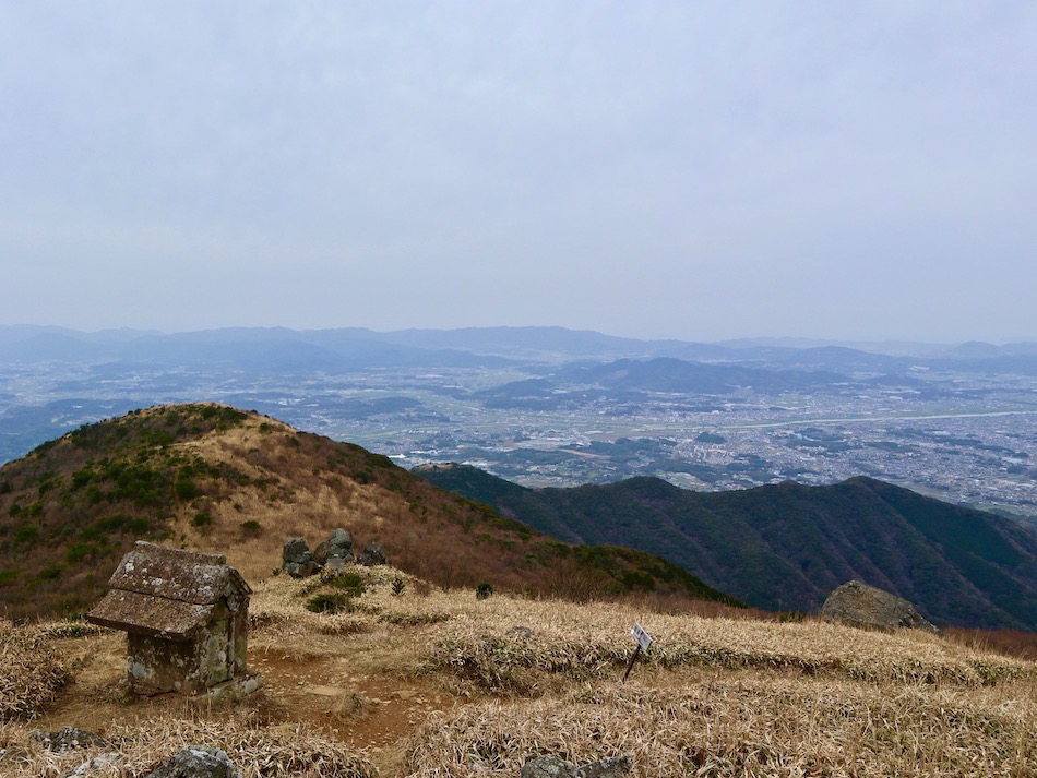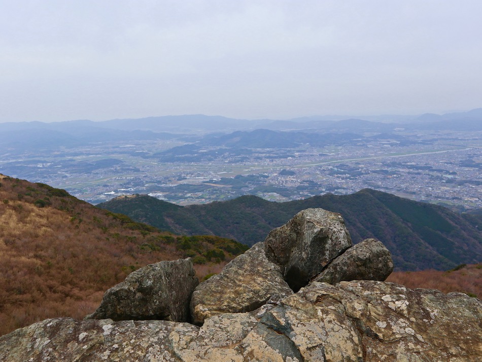 9時前上野登山口で案内マップを見たが、それだけで既に福智山を制覇した気分。(笑) こんな甘い考えが山の事故を招く・・。 登山路が分かり難く時間を無駄にしたが、先ずは第一目標白糸の滝到着。ゆとりを噛まして居れたのはここ迄だった・・。 ここまでは登山の序奏。滝の左手からいよいよ登り開始。たまに遠賀川沿いの景色が開けて苦しさも吹き飛ぶが、兎に角ひたすら急傾斜の登り、また登り。そしておまけにまたまた登り・・。 朝ラン出動を後悔したね・・。登っても、登ってもロープの張られた登山路が延々と続く。心が折れそ〜〜っ。 しか〜し、長い登りもいつかは終わる! 一緒した友人山崎君。背後に広がるのが山頂部。 福智山撃破〜〜っ! ここの眺望は凄い、360度のパノラマ! 平尾台が手の届きそうなところにある。ちょっと見下ろす感じ。 次は南側の眺め、中央やや右が英彦山だろう。 次は遠賀川の見える景色。右奥は宗像市方向? そして、遠賀川河口方向の眺め。 こちらは皿倉山、かすかに若戸大橋が見える? 次は関門大橋、2つの橋脚がなんとか見える。 最後は遠賀川河口方向の望遠写真。天気はまずまずだが、春霞のせいで見晴らしが利かないのが残念だ。 下山は鷹取山に寄り道し、上野越から上野峡へと下った。何という樹か忘れたが、根張の立派な樹があった。ネーミングが面白い。 最後は駐車場脇にあった地蔵様。優しい笑顔に惹かれた。 山崎君、お世話になりました。今度はもっと見通しの利く日に一緒したいですね。今日は大いに鍛えられ感激した山行でした。 福智山登山:8km