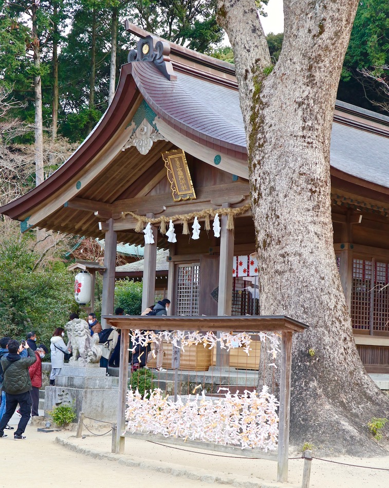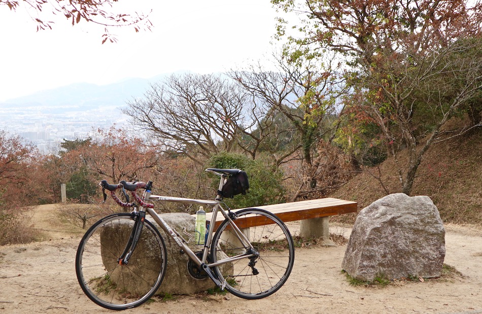ある意味それを見越して選んだ目的地である。予定通り目的地竈門神社へ向かう。約3週間ぶりの竃門神社はすっかり冬支度。 しか〜し、冬支度の木々・境内をよそに絵馬は賑やか。イラストを添えた、いやイラスト主体のものが目立つ。勿論『鬼滅の刃』のキャラがほとんどである。 朝もまだ早い9時過ぎだが、自家用車やバスで訪れる参拝客が引きも切らない。『幸先詣(さいさきもうで)』の幟にコロナの現実を思い知る。 太宰府天満宮で梅ヶ枝餅か鬼瓦もなかでエネルギー補給の予定だったが、店内の飲食中止で断念した・・。コンビニの羊羹とカステラをポケットに入れてスタート。目指すは四王寺山! 昨日まで3日連続10km走ったせいか、 脚の筋肉にピリピリ電気が走る・・。いつ攣っても、いつ失速転倒してもおかしくない状況だったが、ギリギリ山頂まで粘り抜いた! 寒々とした眺めが我が走りを代弁している・・。(涙) 我が貧脚をサポートしてくれたHELIX号もしばし休息。 羊羹とカステラを妻に、しばし休憩のつもりだったが、このところの我が行いに問題あったか、、何と〜雪が落ちてきた。 ほんの数分の降雪だろうが、追い立てられるように山頂を後にした。嬉しい筈の下り坂は、しか〜し、寒さと、寒さから来る痛みとの闘いと化した。 帰宅後の昼風呂とビールの旨さ最高! 本日の自転車:58km