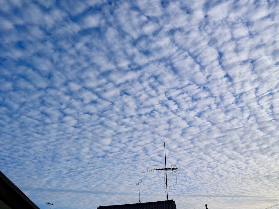 先週 1月 年間累計 ラ ン 40㎞ 114㎞ 114㎞ 自転車 0㎞ 19㎞ 19㎞ 今月ある日の空、黒い帯は飛行機の航跡か? 先週、伊万里の走りも酷かったが、その後の熱のなさも負けず劣らず酷かった・・。それでなくても今週は慌ただしさ募る『魔の下旬』、心が試される時期だ。さ〜て、1週間後の結果やいかに? [600(ペース)、535(ペース)等の表記は、 それぞれ1㎞6分00秒、5分35秒で走ること] 今週のムッサン 20日(月) 朝は久し振り上智10km。約1時間のストレッチの後、10km走の時間確保できたのは嬉しい。常にこうありたいものだが・・。 上智10kmJOG:652( 655→650 ) あいさつ活動の後、坂道ダッシュした。 しか〜し、10kmの後の坂は流石に苦しい。腕振りを意識したいのだが、頭で出来ても体はついてこない・・。 輝国坂×5 1km:720 best 658 19日(日) 先週の手抜きを少〜し反省・・。冷たい雨の中、いざ〜! 上智コースへ出撃! 今日はしかし本当に鍛えられた。気合を入れて臨んだ3周目、靴ひもが解けたのだが、それを直すのに数分を要した。冷たい雨に指がかじかみ思うように動かなかったのだ・・。帰宅後即朝風呂ドボン。そのまま午後練もドボン・・。 上智15kmJOG:657( 707→702→641 )