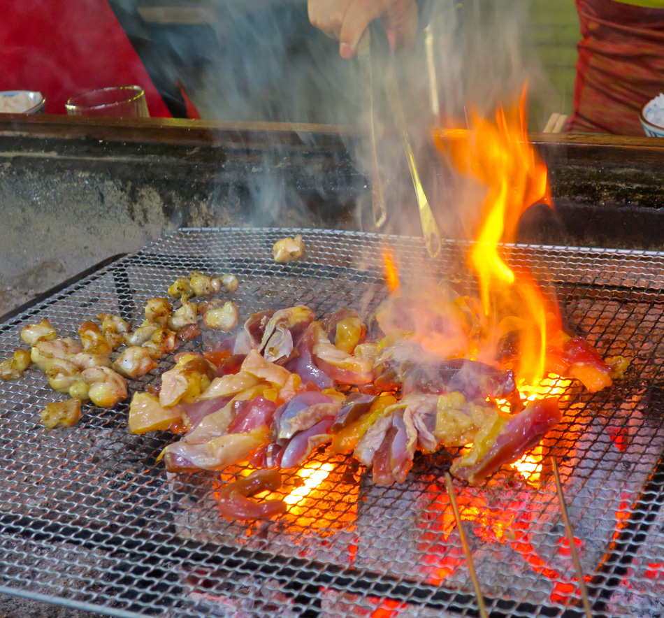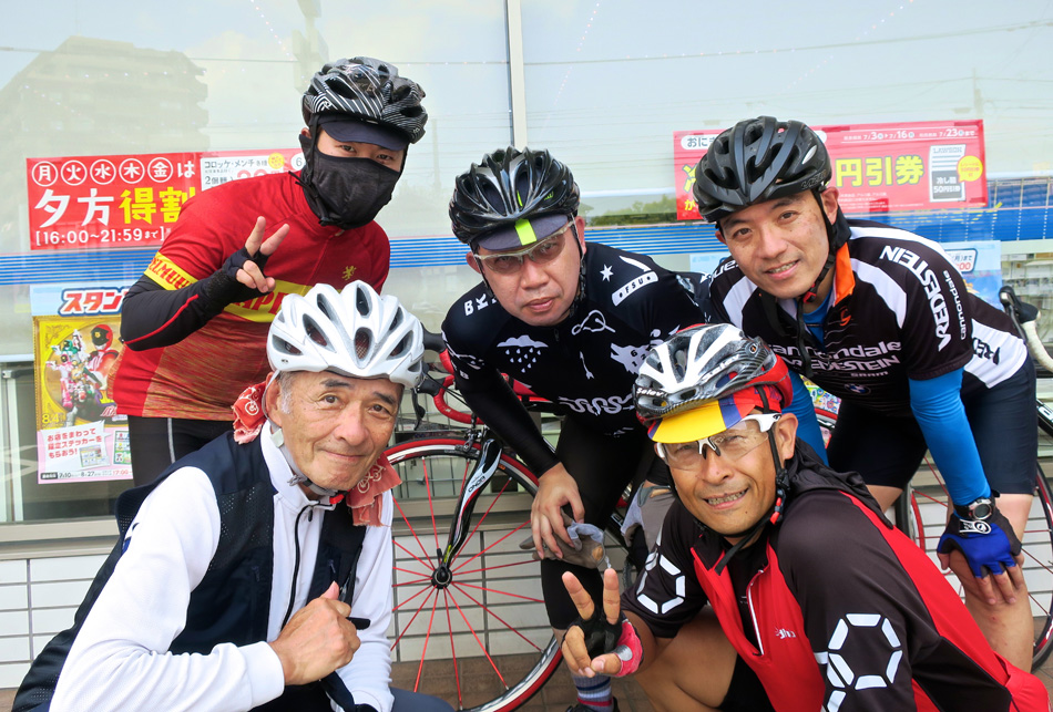 一日になりそうだ。この暑さでは参加者も少なかろう。と思 っていたらおっとどっこい! これしきの暑さなんざぁ平気の平左と5人が集結。 いやはやなんとも、暑さを熱さで吹き飛ばす面々! スマイリー、Piccolino、くぼちゃん、初参加うっちゃん、 それに、Cycle86の5人。 うだる暑さの下、筑後川の流れがねっとり感じられたのは 気のせいだろうか。 午前早くから30℃を超す暑さには、さしもの自転車野郎 もげんなり。遊の谷手前の矢部川で体温調節。 しか〜し、川の水さえも温めてしまいそうな気温に打ち克 つ方法は唯一つ。栄養補給也! 何時もにも増して焼き網の 上の捌けがよかった。それ以上にお冷やの捌け物凄かった! 暑さに対して一種の生体防御反応?が働いたのだろうか。 と、極旨の地鶏に舌鼓を打ち元気回復と思われたのだが、 店の外は焼けるような暑さ・・。まさか我と我が身が地鶏と 同じ羽目に陥ろうとは、、、 帰り道、熱中症対策にコンビニ梯子で売り上げ増に貢献し たこと間違いなし! 皆さんお疲れさまでした。またお付き合い下さい! 本日の走行距離、控え目に137㎞としておこう。