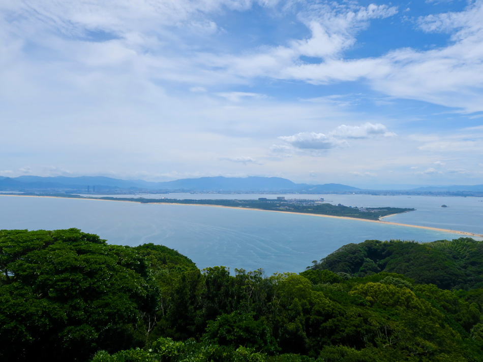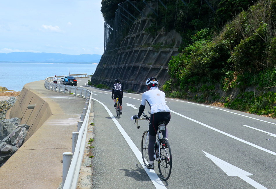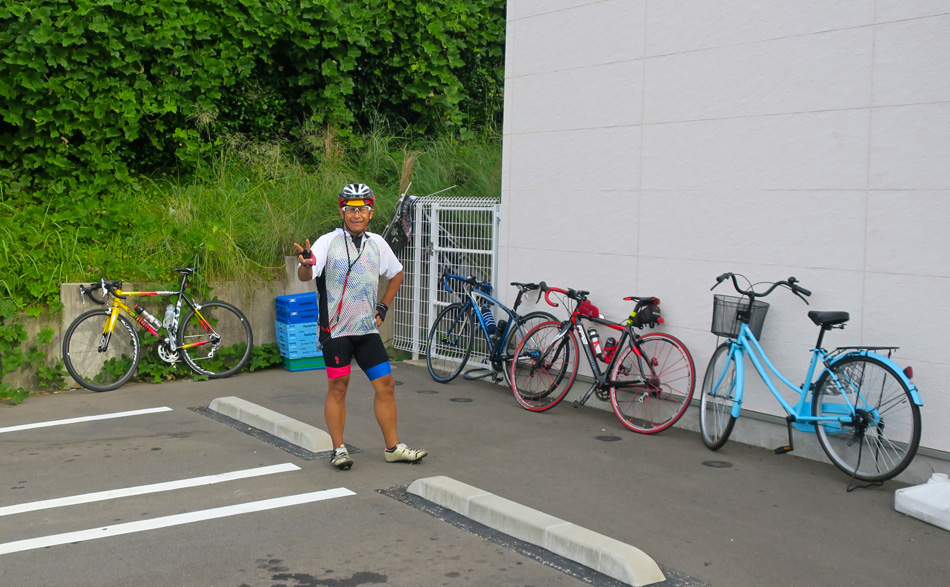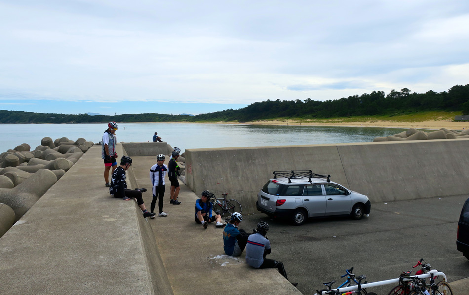 ない自転車狂揃い!(笑) 揃った自転車7台。 ママチャリ1台は友情出演? 更に三苫三差路で北九州組が合流、総勢9人になった。 久し振りに女性も参加とあって、我がサービス精神全開! 先ずは、奈多漁港・三苫海岸を訪ねた。 海の中道、能古島、可也山、志賀島、玄界島、総て一望! 暑い中ハマユウの白い花、気持ち涼しい? しか〜し、花だけでは連日の暑さは如何ともし難い・・。 暫く景色を楽しんで、本日のメイン志賀島へ Let's go! 志賀島北端、我がお気に入り勝馬海岸の小島。 海岸を歩いた後は、飲料を補給して潮見展望台へ! わずか2㎞半の上りだが、、、もうヘロッヘロ・・。 何とか頂上まで止まらず上って合格!? それにしても若手の速いこと! ほぼ全コース一人旅。 電動モーター仕込んでるんじゃないの・・?(涙) しか〜し、きつい思いをした後のご褒美最高だね! 文字通り『海の中道』 猛暑の中、坂を上れば余力ナ〜ッシング! つうか、ハラ ピコリーノでございます・・。 苦労して上った道をササッと下って目指すは昼飯〜〜! 本日のチョイスは『お食事処 しま』 大変美味しゅうございました! う〜〜っ満腹!! 遠路遙々北九州二人衆、ヒロさん、コバちゃん、 超お久〜のマッコチさん、 仕事前で勝馬から弾丸バイバイのスマイリーさん、 紅一点くぼつまちゃん、 そして、piccolinoさん、うっちー、くぼちゃん、 おつかれさん! って、疲れたのは俺だけか・・。 また次の機会に会いましょう! 走行距離:75㎞ 8月5日は『平尾台輪行ツアー』に変更決定だよ!