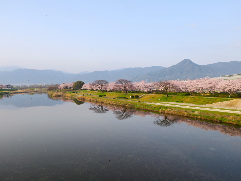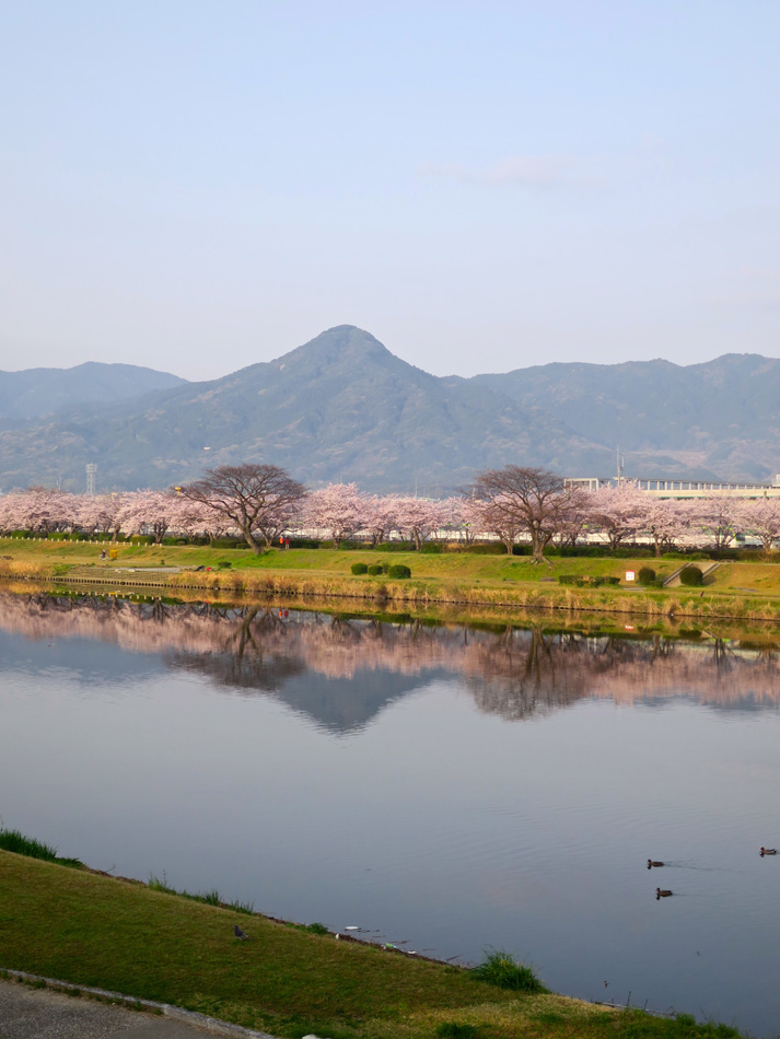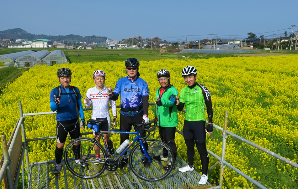 4月1日のエイプリルフールだろうって? 弁解の余地無し。 しか〜し、本当にツーリング出かけたよ! 2年ぶりのドラマ チック2週連続企画なのだ〜! サイクリングの女神も喜んで素晴らしい景色のプレゼント! 飯盛山と室見川の桜。 春の風景を楽しみながら快適ツーリング。次なるは瑞梅寺川 の桜。川面にはすでに花びらが流れていた。一瞬の華やぎ。 Itoshimanに先導されるまま訳ワカメの裏街道を走って到着 菜の花畑! 被写体が男じゃ撮影意欲は削がれるが、、、記録上撮ってお くことにした。(笑) 今回大きく千切られることもなく目的地鏡山へとひた走る! 最後の九十九折りの坂を上った先には! 皆さんご存知あの絶景展望台! 今日の参加者全員集合! 左から、ZEN、uruman、スマイリー、Cycle 86、トミー、 Piccolino、ヒロの計ラッキー7名。 皆さん、今日も楽しいツーリングありがとうございました! 鏡山の桜はもう満開過ぎの感じ。快適に駆け下る桜並木。 花吹雪の中を突っ走る快感! しかし、ぶつかってくる花びら に痛さを感じるとは・・! 初めての経験だった。 振り返ってみる鏡山。どっしり構えて横綱だな。 しか〜し、空きっ腹の我々を待っていたのは横綱級の激旨ハ ンバーグ。チョイスしたのは250g中華風甘辛ソース! 口に入れた途端とろけて口中に肉の旨味が広がる〜〜! ハンバーグかステーキを注文したら、バイキングでご飯・おか ず・ドリンク食べ放題! しかも、種類豊富で美味い!! 次回はここをメインにしてツーリングもあり!? Piccolinoさん、素晴らしい店を紹介いただきありがとう! パンパンに膨らんだ腹でペダルを漕ぐ我々を見送ってくれた のは、桜雲海に浮かぶ唐津城! 後は帰路を淡々と走るのみ。楽しいツーリングドラマは無事 終了の筈だった。筈は筈にして決定に非ず・・。 帰路休憩で立ち寄った二条パーキング。ここに華麗なる最後 のドラマが待っていた! 『危ないっ、追突〜っ!』 急ブレーキ! 次の瞬間、前輪を支点に後輪が宙に舞い、我が体は頭から地 面へ。華麗なるジャックナイフ型着地! 皆さんお騒がせ致しました。(汗) 打撲・擦り傷多数あれ ど本日も元気! 月面宙返りの真似はされませぬよう!(笑) 本日の走行距離:112㎞