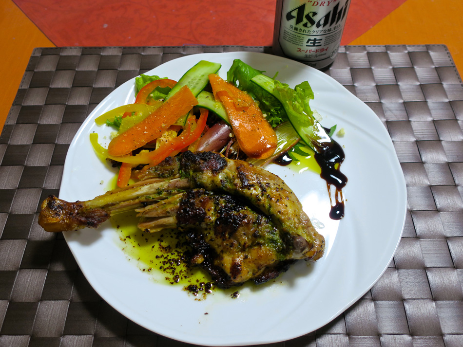 料理教室も今月で3回目。 果たして続くかと心配したのは杞憂だった。教室のある日 が待ち遠しく感じられるほどである。 今日も先生の実演を見ながら、料理の手順・要領等をメモ する。料理実演が終わるとワインと共に先生の『作品』を頂 く。こんな贅沢、なかなか味わえませ〜ん! よねっ? 先ずは前菜?として、ビーツのスープを特別に頂いた。写 真だけで、食べて頂けないのが申し訳ない美味しさ! 次は、今日のメイン『ぷりぷりカキとエリンギの香草バタ ーソテー』 エリンギの香ばしい美味しさ新発見! デザートに、『旬のイチゴのふわふわムース』 ほどよく甘いイチゴの上品な味・香りが口一杯に……! 赤ワインと共に頂き、話も弾んでお・し・ま・い。 が今までのパターン。しかし、今日は違いましたよ〜! 唯一同じだったのは、何故か足に違和感がでたこと・・。 前回はこの違和感を契機に、ランの調子が狂って北九出走に 黄信号が点る事態に追い込まれた。 しか〜し、今日は迷わず超前向き対処! 休足日そして料理日に即決したのだ。(笑) そして、夕食に作ったのがこれ、 先月の料理、『ヤリイカのムース詰め バターソース』の 復習。女房も絶賛の出来上がり!? 手前のパンみたいなや つ、余ったムースをオーブンで焼いたもの。まさにスフレ! ふわっふわで美味しく立派な一品って感じ! 料理教室の後いろいろ食材を買ったが、その中でお勧めし たいのが次の写真左手のバルサミコソース。右のバルサミコ 酢を半分に煮詰めたもの。自分で作るつもりだったが、手間 が省ける便利さについお買い上げ! 950円 500mlの酢に対してソースは950円 250ml。同じも のを煮詰めて半分になっただけで値段は同じ。合理的という か数学的というか、その値段設定に笑っちゃいました! サラダのドレッシングや肉・魚料理のソースとして重宝し そうですよ〜! この先料理にはまりそうな予感、、、それとも持病の三日 坊主病炸裂か? 今後の展開に、乞う御期待!(笑) |